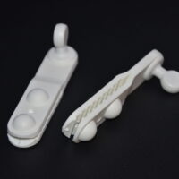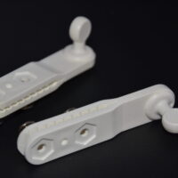 Crocodile Hangers® Bent Hooks are plastic hanger components that are used to hang tent sidewalls, curtains, awnings, and banners. These hangers easily slide into keder rails or structure frames. Confirmed by outside lab testing, our hangers are 70% stronger than our competition’s product. All styles are available with screws or rivets. Check with your structure manufacturer on which Crocodile Hangers® will work best for your structure. Sold in sets of 100.